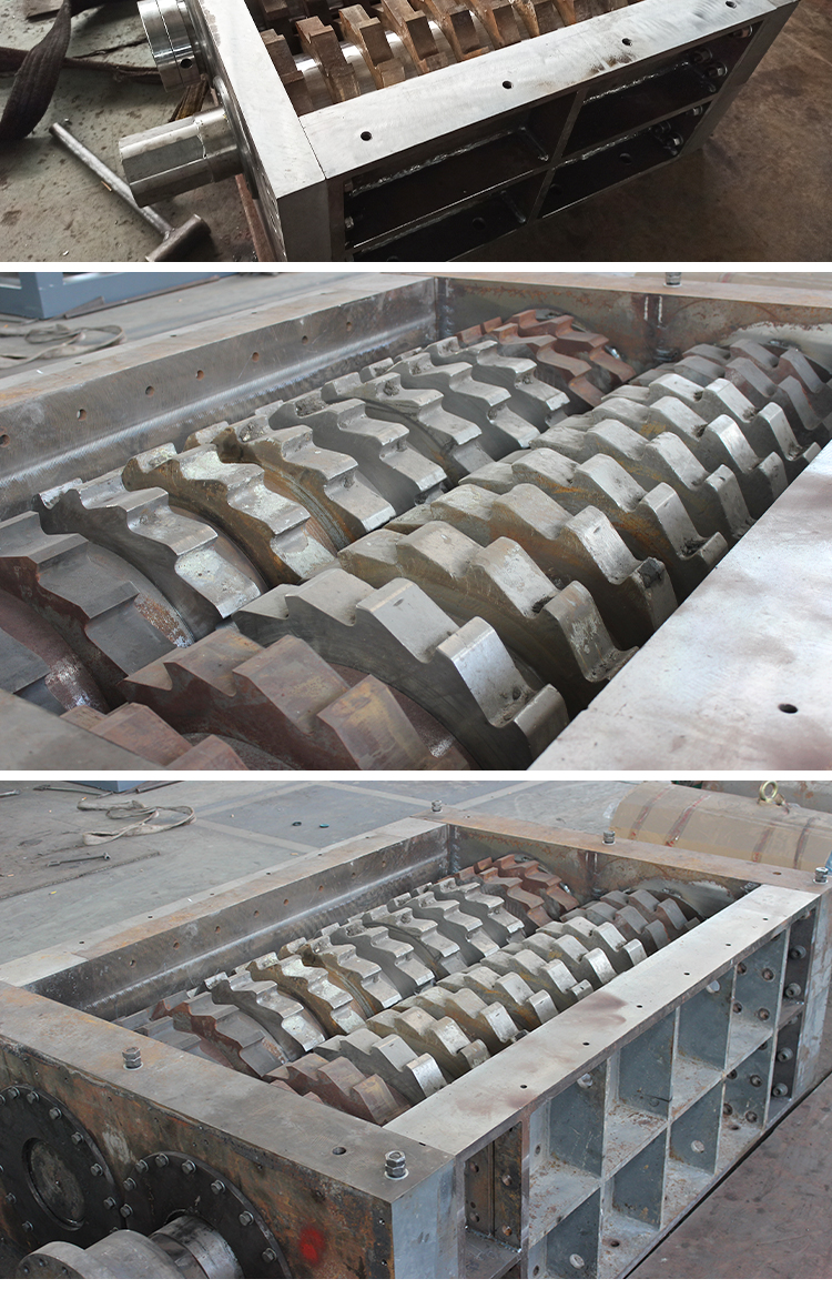 撕碎機刀箱用于破碎塑料、橡膠、纖維、紙張、木材、大型中空物料(塑料桶等大型容器)和各種混合廢料特別是含有金屬的廢料,或者是預(yù)碎含有泥沙等容易磨損刀具的廢料。比如:成卷薄膜、編織袋、電視機、冰箱売、木頭、轎車和中型汽車輪胎及中空桶類、追網(wǎng)、硬紙板、電路板等。刀具的厚度和刀爪數(shù)量可根據(jù)不同物料更換。破碎中空物料時可配備壓料裝置提高產(chǎn)量。另可添加旋轉(zhuǎn)篩網(wǎng)控制出料尺寸。